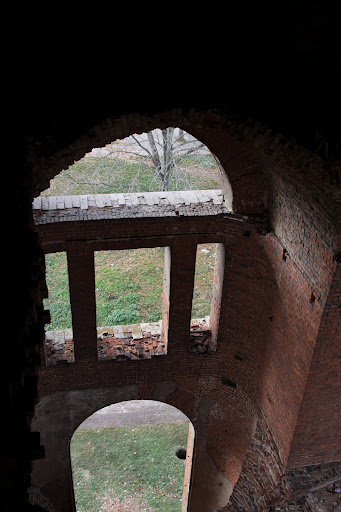 Владимир, большой знаток архитектуры, сообщил нам, что эти руины по-своему уникальны: в них были "открыты оба восьмерика". И правда, из под свода были видны два концентрических восьмиугольных отверстия маковки.